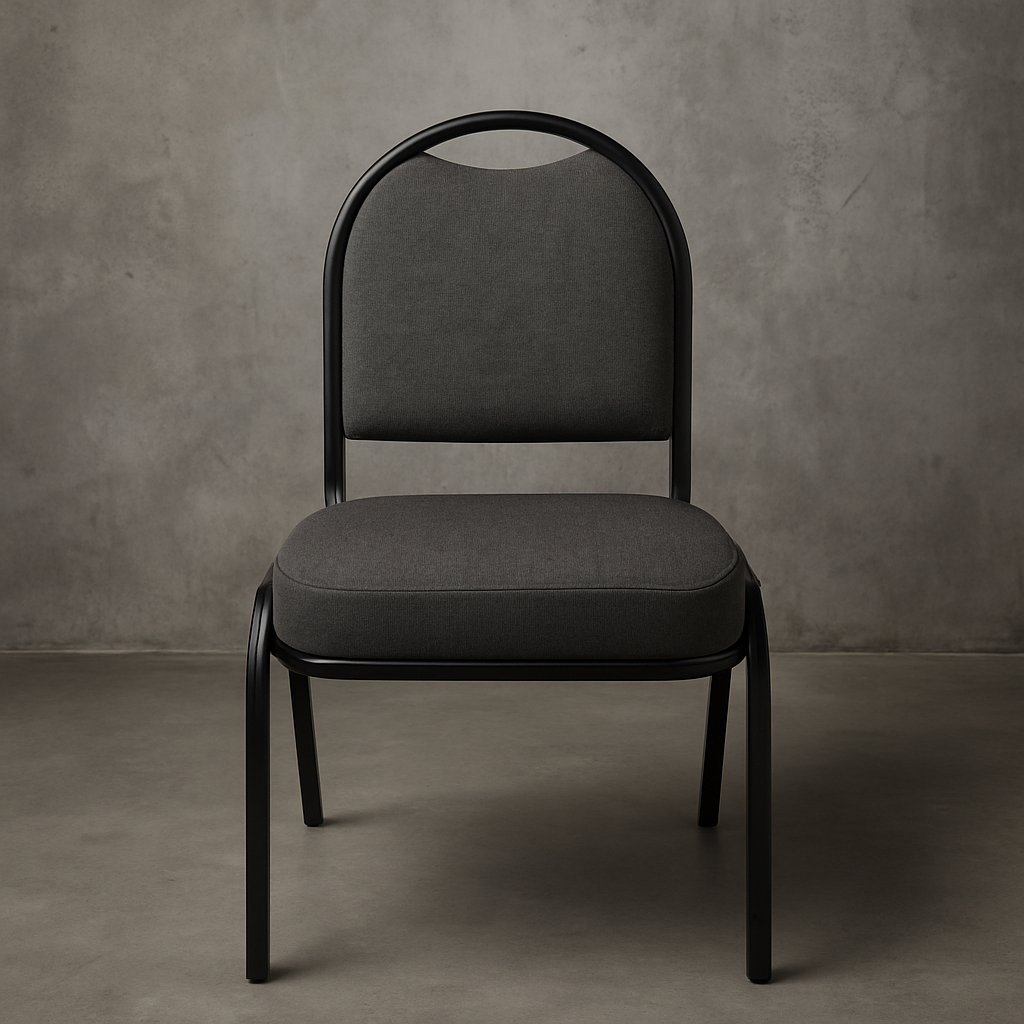 Silla resistente con estructura de hierro y cojines en espalda y asiento. Ideal para iglesias y espacios de congregación. Soporta hasta 300 lb.